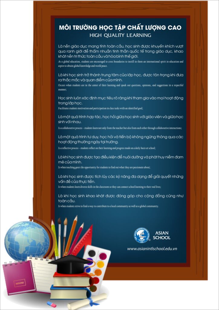 Trường Quốc tế Á Châu cung cấp cho học sinh chương trình giáo dục xuất sắc, khuyến khích các em tham gia học tập với tinh thần tự giác và thoải mái, giúp các em có khả năng tư duy độc lập, tự tin, phát triển cả về kiến thức lẫn nhân cách một cách tự nhiên và hiệu quả.
